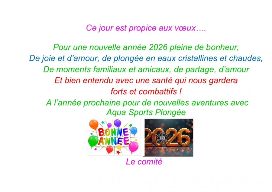 - Le Comité Aquasports Plongée vous souhaite une BELLE ANNEE 2026