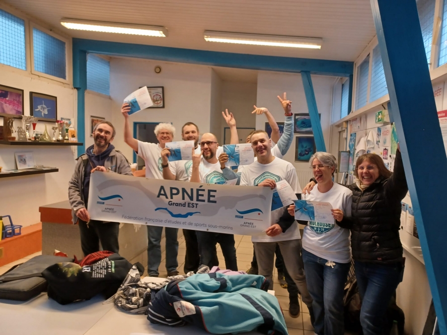 Dimanche 8 Février, la comission Apnée Grand Est a organisé une session d'examen pour le passage du niveau IE2, et 2 Apnéistes AQUA SPORTS METZ PLONGEE étaient présent.